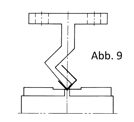 80°, welches von oben kommt, prägt den Blechstreifen in der V-Nut zu einem