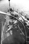 Steuerbord-Ansicht vom Vorschiff mit Brücke und 45-mm-Flak. Von der Bugspiere