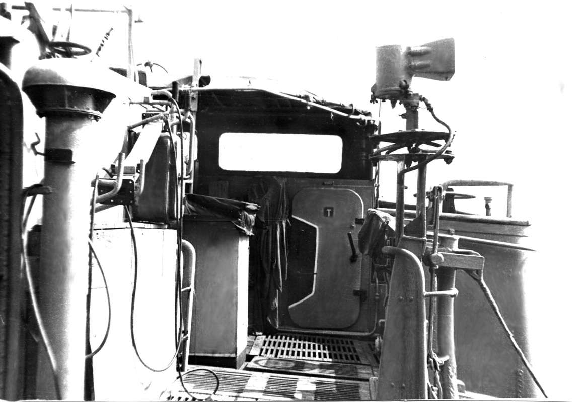 Ein retuschiertes Foto der Serie: Blick in die Steuerbord-Nock des Fahrstandes.
