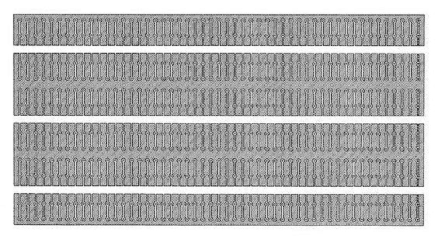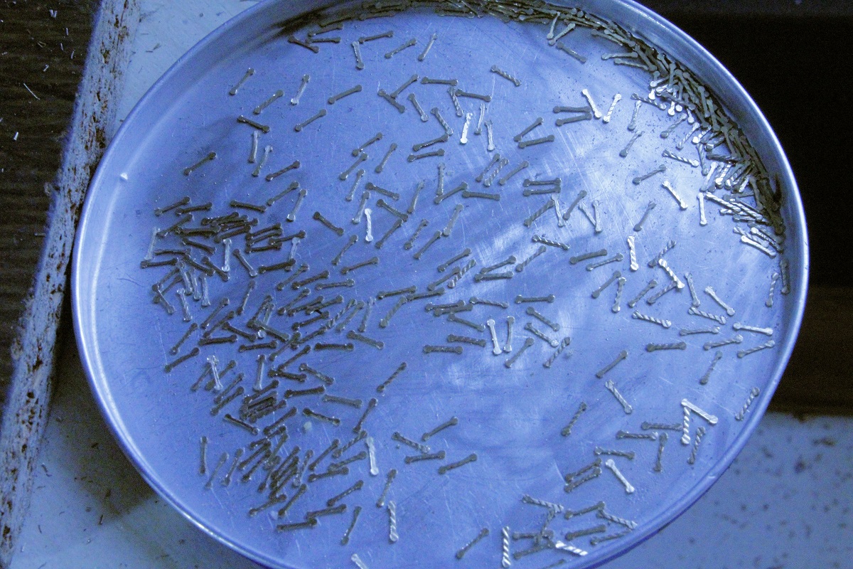 In diesem Bild sehen wir 300 Schäkel an ihren Haltestegen. So vorbereitet habe