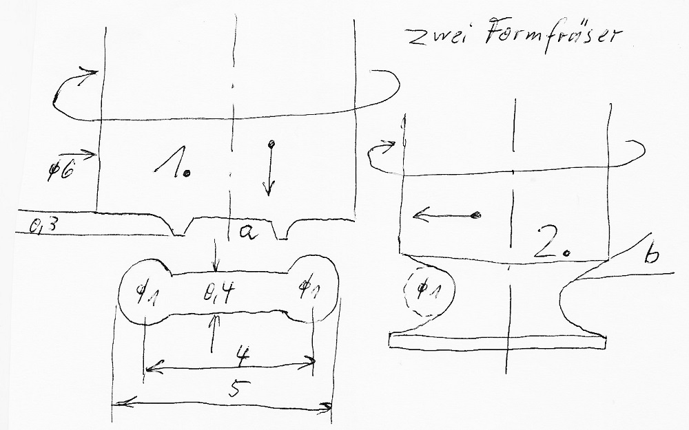 Zweischneider-Fräser (1. der oberen Skizze) etwa im Querschnitt aussieht, sieht