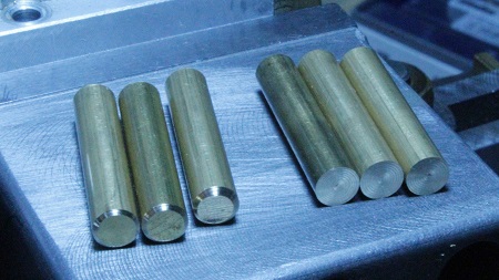 sechs vorbereitete Stücke 6-mm-Rund-Ms. Das Ende, welches in die Spannzange