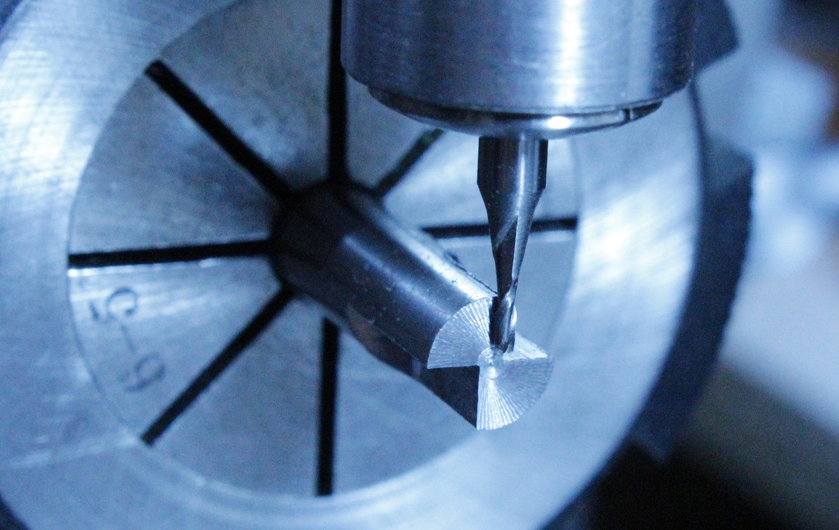 VHM-Fräsers die obere Rundung des Materialstücks und kann nun den leicht