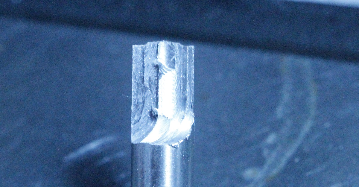 Fahne hat sich stets weggebogen, sie weicht dem Fräser aus. Das Profil war vorn