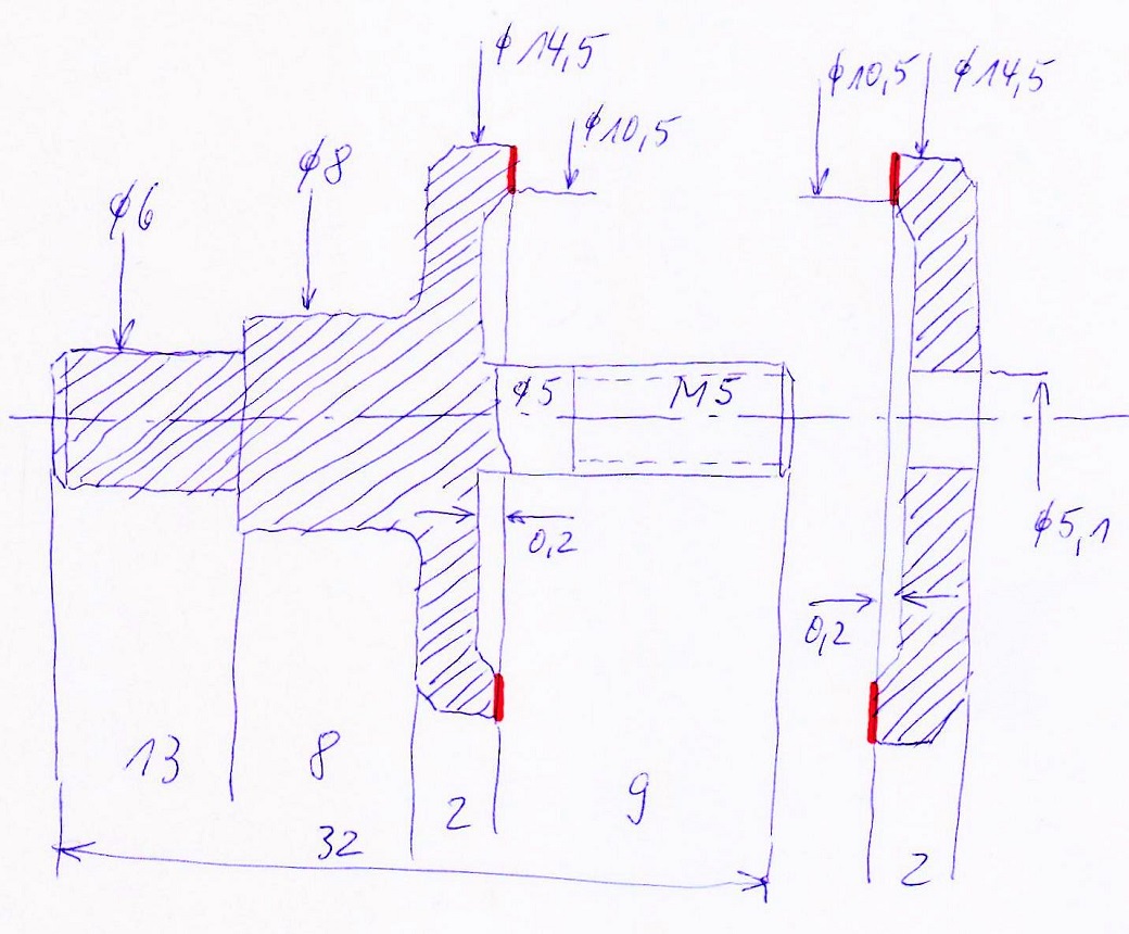 von 6 mm und an der Stirnseite unbedingt einen eingedrehten (!) Freistich.