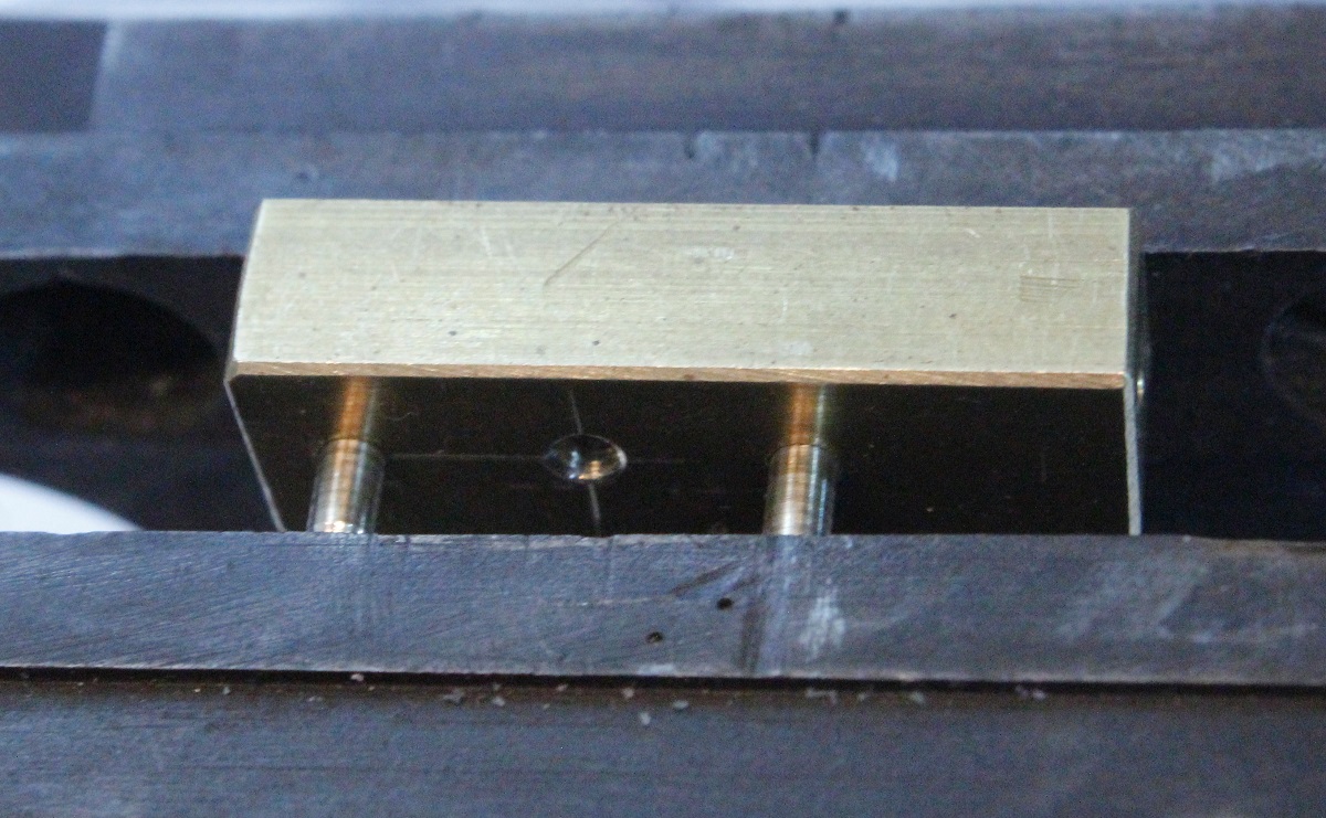 Kanal ist eine feste Backe (b) eingeklebt/-gelötet. Mit einer beweglichen Backe