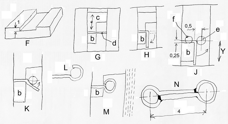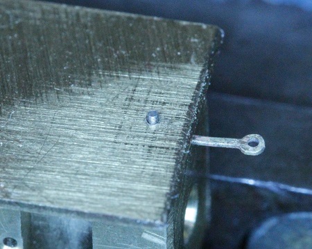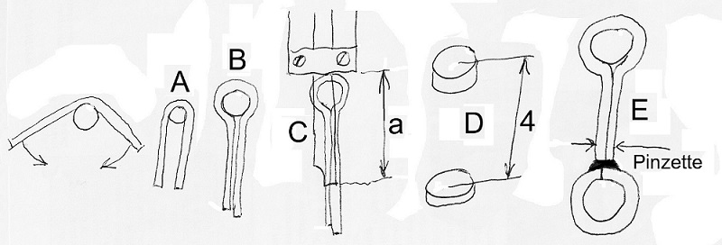 Dieser wird nun um einen kurz ausragenden 0,5-mm-Stahlstift (e) gebogen, welcher