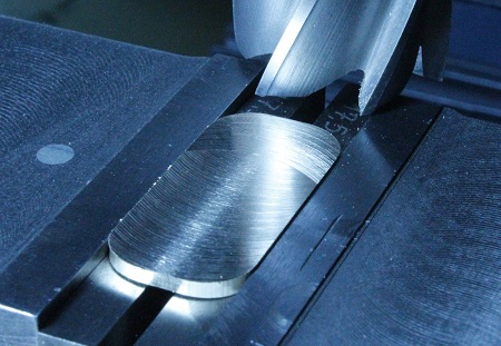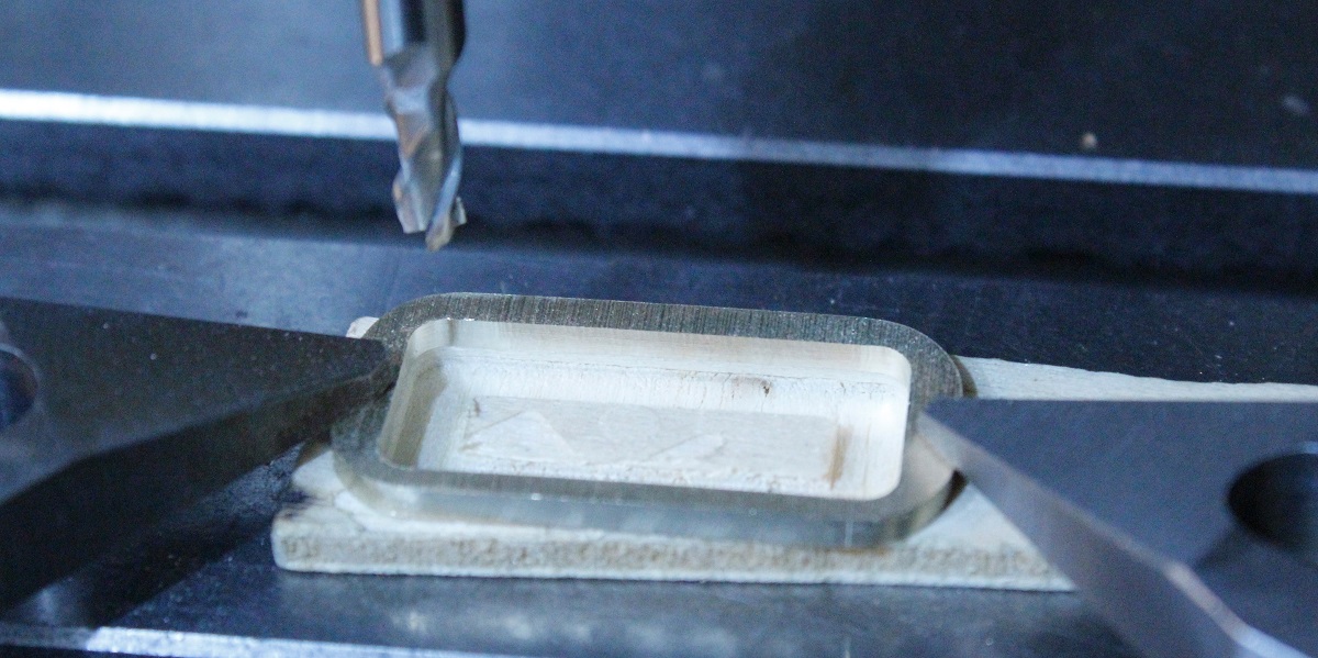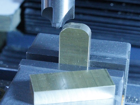 sichtbare Rundung über die gesamte Breite von 18 mm anfräsen, sehr langsam