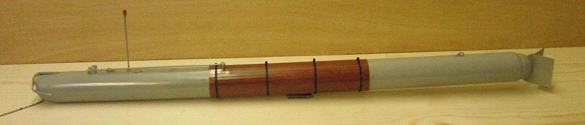 ebenfalls von Günter: sein Modell mit einem 13-m-Hohlstabgerät (Fernräumgerät gegen Magnetminen) im Schlepp, gleicher Maßstab 1:25