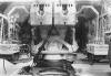 Zwischen den Kantachsen liegt mittig und auf gleicher Höhe die Horizontierachse (e). An dieser Achse hängen in zwei Nadellagern an der vorderen Fläche (f) alle Richtantriebe, die Zieloptiken, die Sitze für die Richt- und den Kantschützen und der vordere Teil des schweren (5,83 t) Splitterschutzes. Der hintere Teil des Splitterschutzes hängt mit einem Querbügel (g) am kleineren hinteren Lager (h). Den Schwenkmotor am Ständer habe ich mit (a´) bezeichnet. Das Ritzel der Kantmaschine erwirkt das Kanten am Zahnbogen (j).