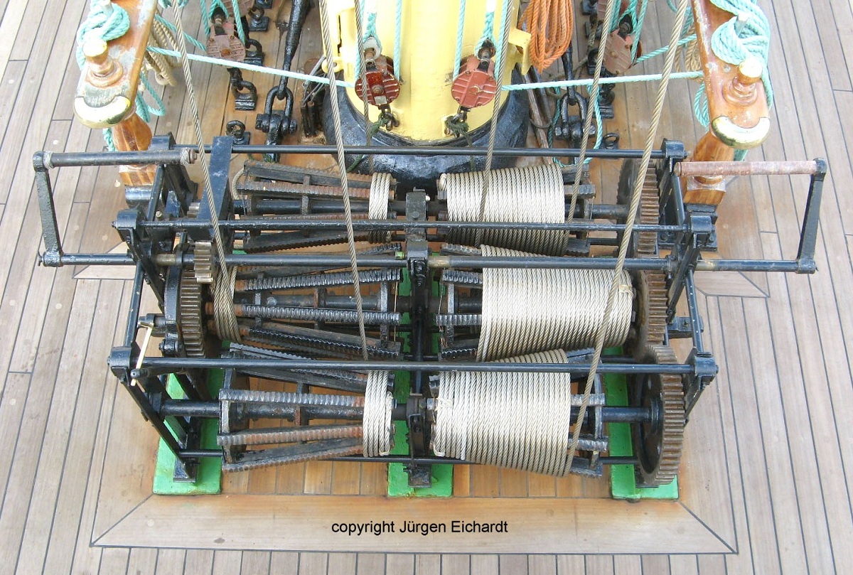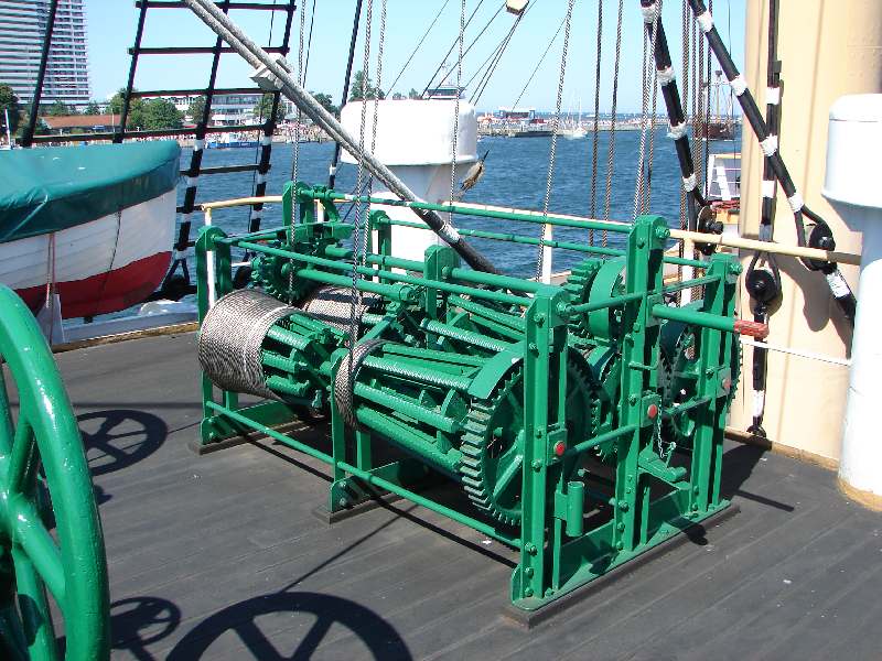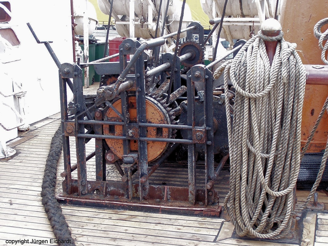 Eine Brassenwinde auf dem (heute) russischen SSS SEDOV, total vom Fett zerfressen!