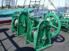 Die gleichen Winden (für zwei schwere Unterrahen nebeneinanderstehend) top-gepflegt heute. Hinten rechts sieht man eine Brassenwinde. Auf echten Segelschulschiffen sind diese Winden verpönt. Da soll die gesamte Takelage möglichst nur von Handtaljen bedient werden.