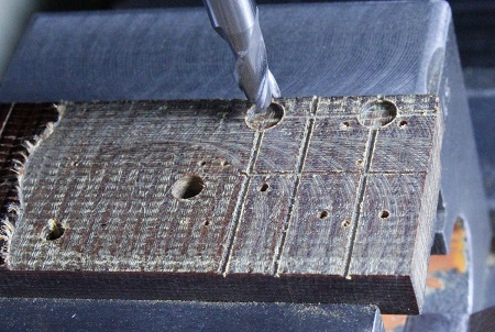 ein. Vor dem Einfräsen der schmalen Nuten als „Lager“ für die Drähte muß die