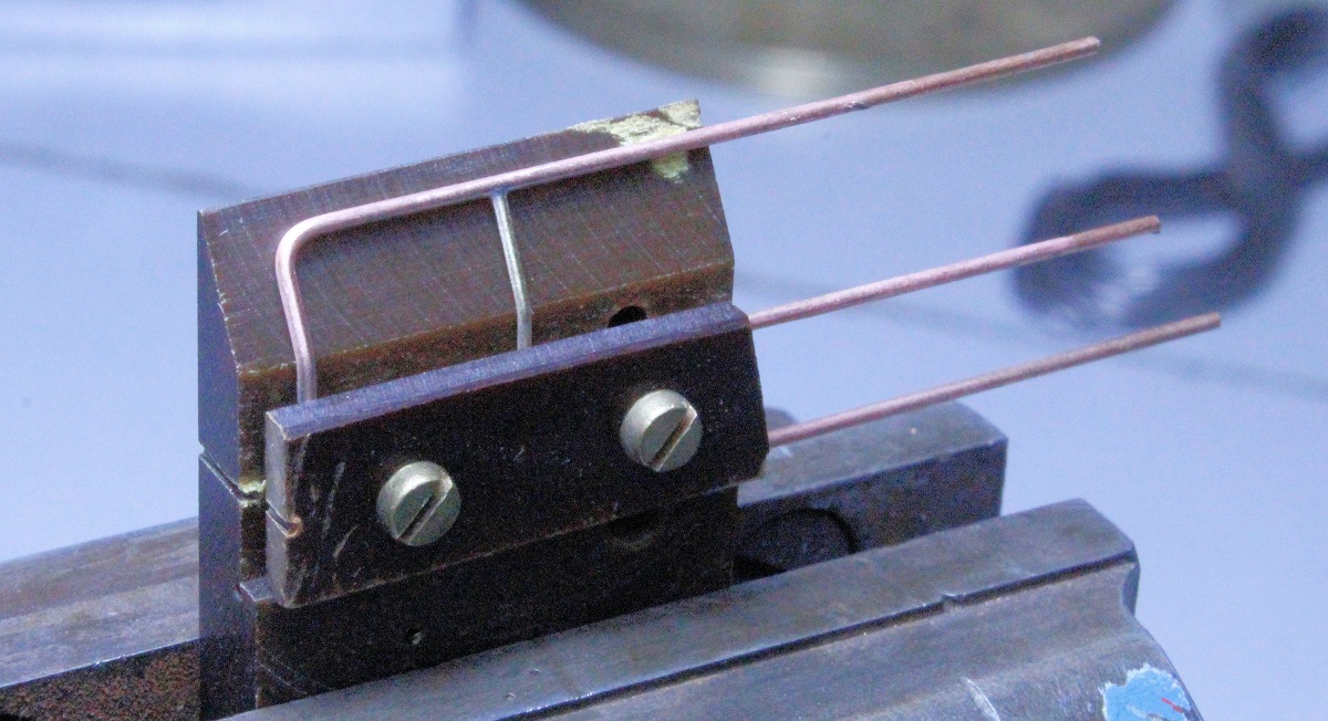 diesmal mit dem Biegen der beiden U-förmigen „Rohre“ aus 0,8-mm-Kupferdraht,