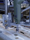 Helling-Bohrständer, bestückt aber nun mit einer Pinole mit einer