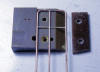 zwei Klemmbacken; rechts liegt ein 6-mm-Ms-Dorn, der mit seinem Zapfen in das