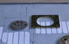 Blechplatte ein Schalter installiert. Hinter der Luke erkennt man ein