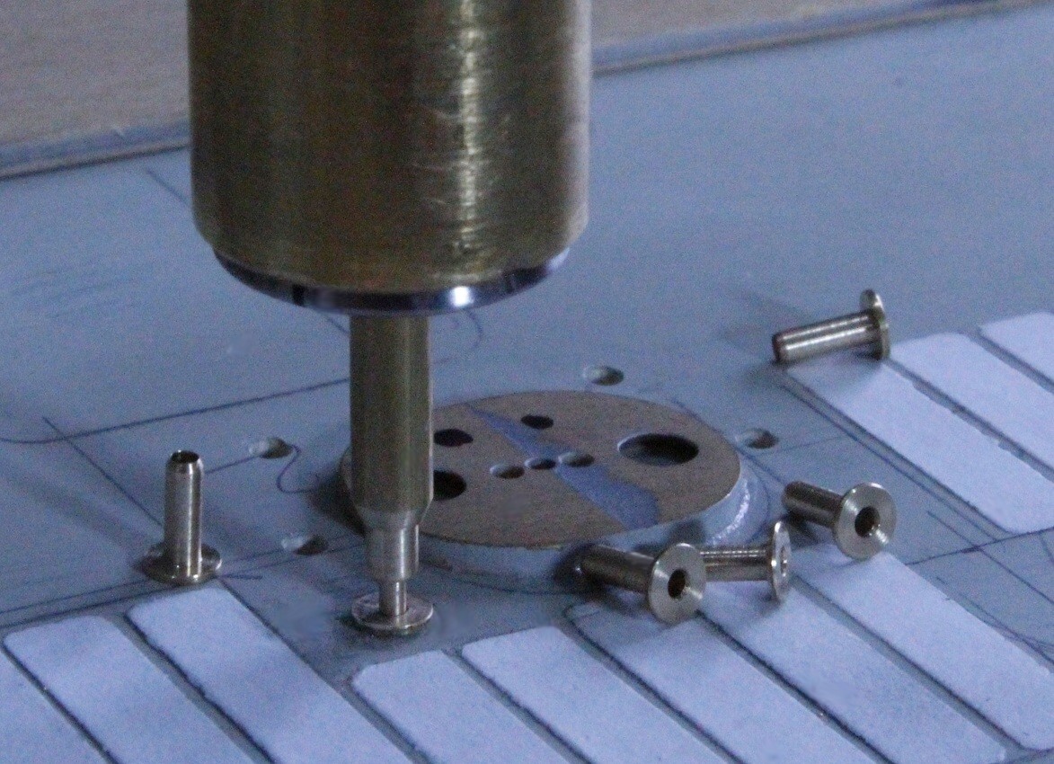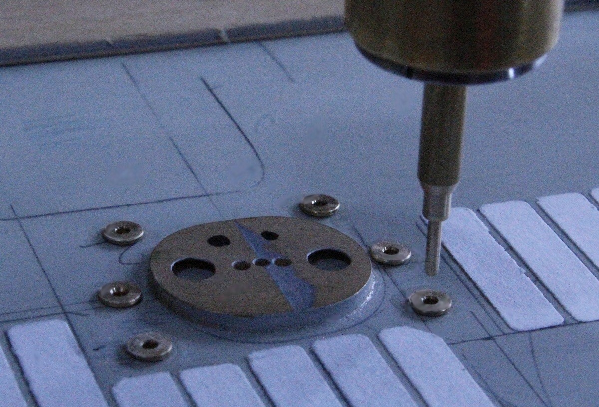 5-mm-Fingerfräser in die Mitte der oberen Kreuzungspunkte 1 mm tiefe Senkungen,