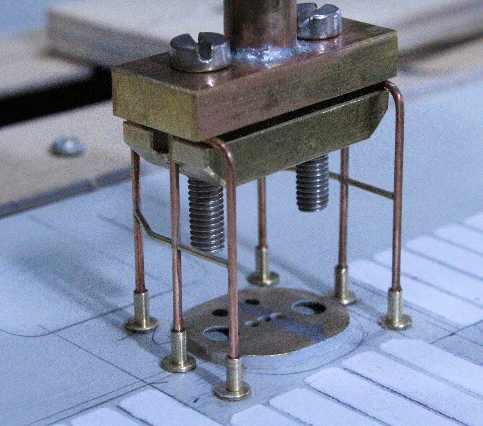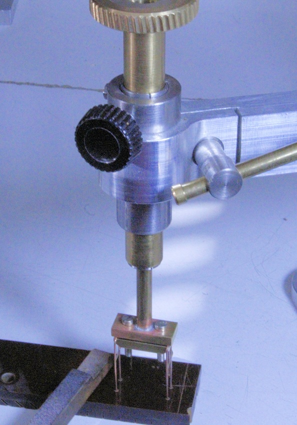 Die mittlere Stütze wird eingelötet. Bei dem Foto erkennt man auch den Sinn der