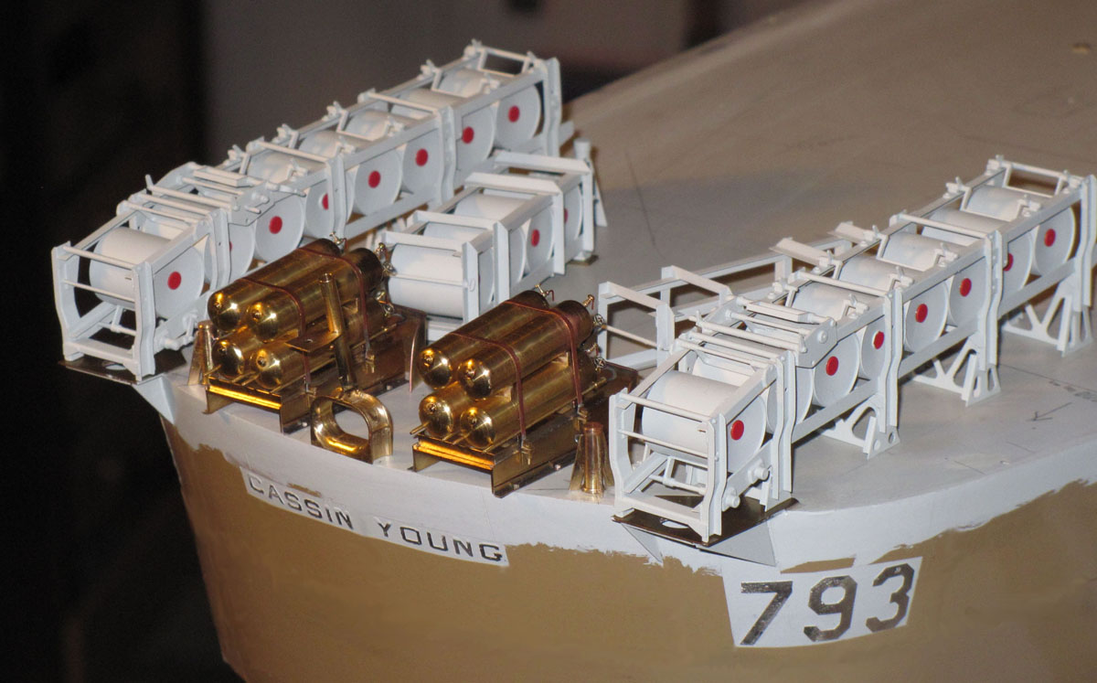 "Racks" für die Nachlade-Wasserbomben. Er steht schräg auf dem Deck und hat