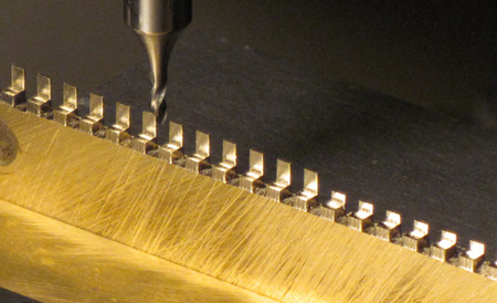 Messingblech habe ich auf der Fräsmaschine per Koordinaten-Bohren eingebracht.