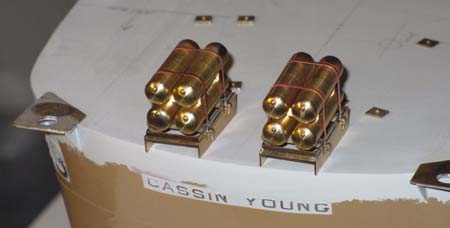 dunkelgrau gespritzt und die hellgrau gespritzten Smoke-Generatoren eingeklebt werden. Die je sechs Suchstifte erleichtern enorm