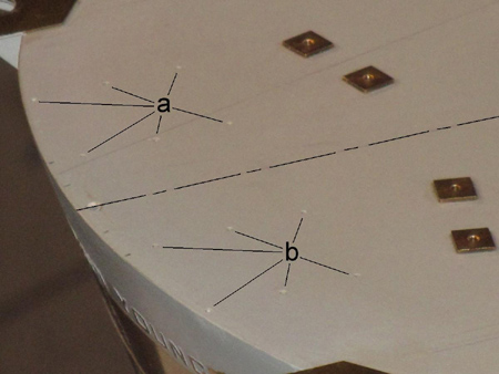 nachgezogen. Mit der Bohrschablone sind die sechs Bohrungen a auf der