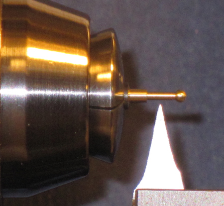 2,5-mm-Ms-Material die beiden Durchmesser 0,7 und 1,3 angedreht, der Durchmesser