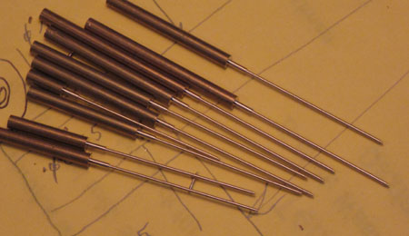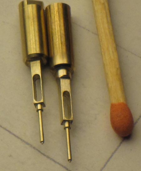 Durchmesser 0,6 x 28 mm lang, links das Anschlußstück: Durchmesser 1 mm x 2,5 mm