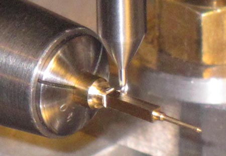 mm. Mit winzigen, sorgfältig geschliffenen HSS-Drehstählen, deren Hauptschneiden