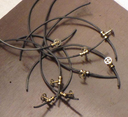 Gummilitze von 0,5 mm Durchmesser, gesteckt. Bei so winzigen Teilen muß (!) man