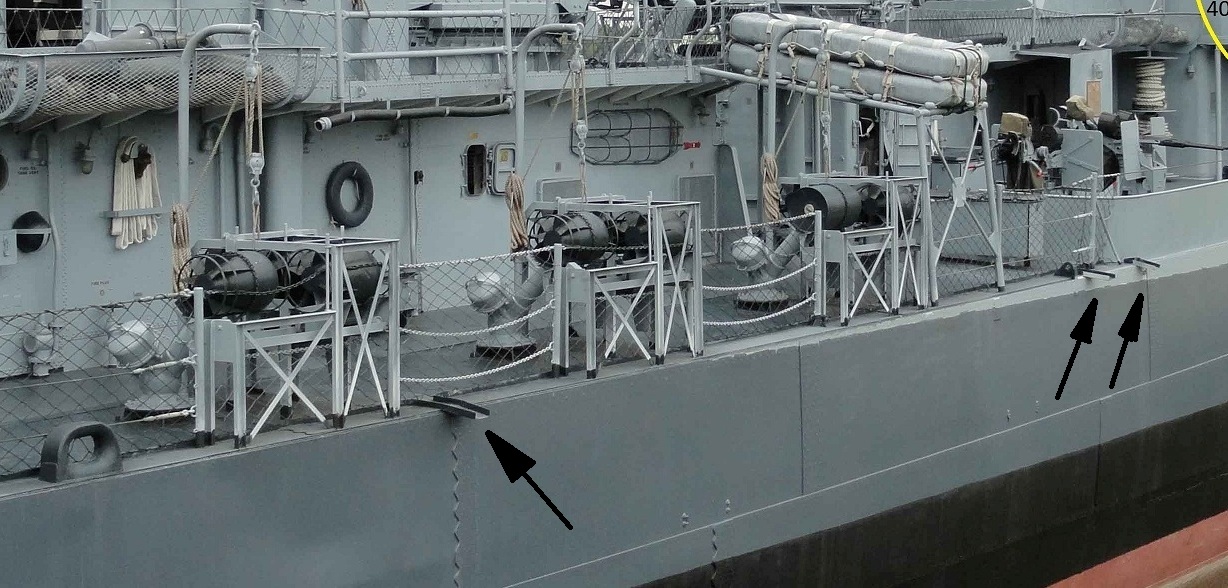 Hauptdeck sind an jeder Seite elf sog. scupper (deutsch: Speigatts) angebracht.