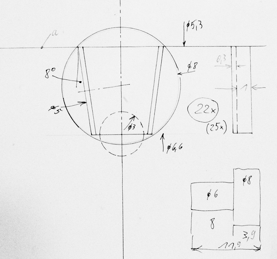 Rohmaterials (Ø 8) zu ermitteln. Mit Ø 3 ist der Durchmesser des kleinen
