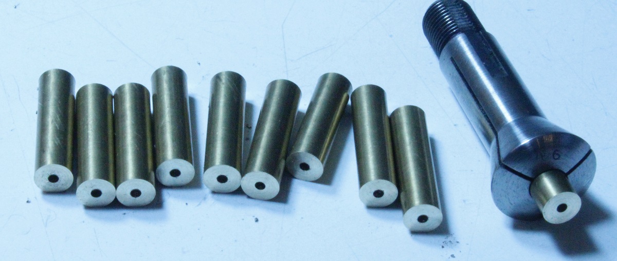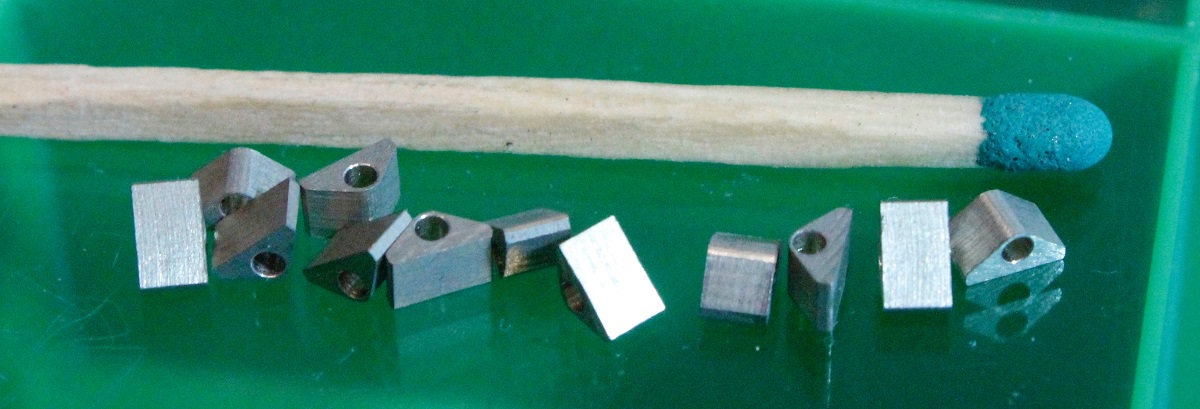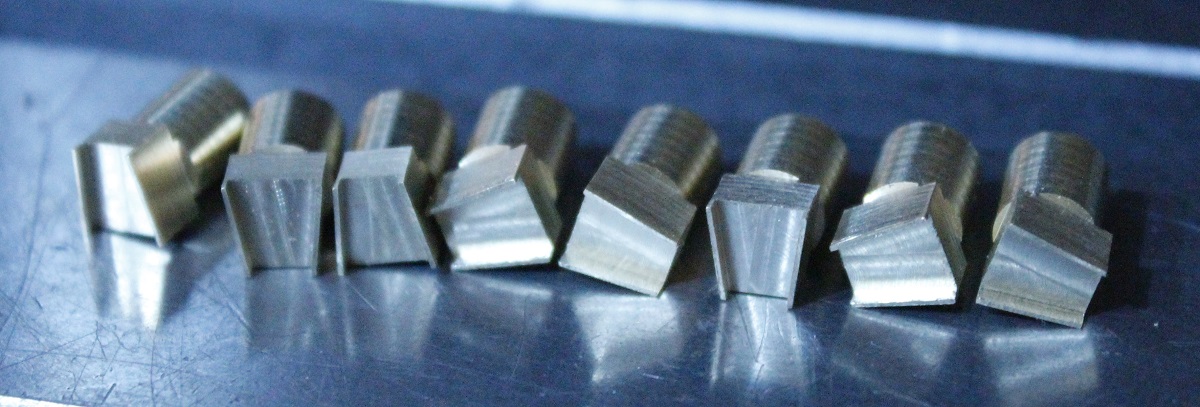 An 25 Stück 8-mm-Ms-Materialstücke habe ich Spannzapfen Ø 6 x 7 angedreht und
