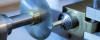 dann die "Köpfe" in der 6er-Spannzange auf gleiche Höhen (Maß 3,9 in der Zchng.) plangedreht (rechts).