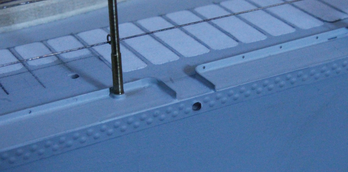 So sieht es am Modellrumpf aus. Der Folienstreifen aus Alu mit der