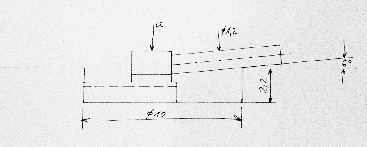Das sieht fertig so aus. In der Mitte die 1,2-mm-Bohrung...