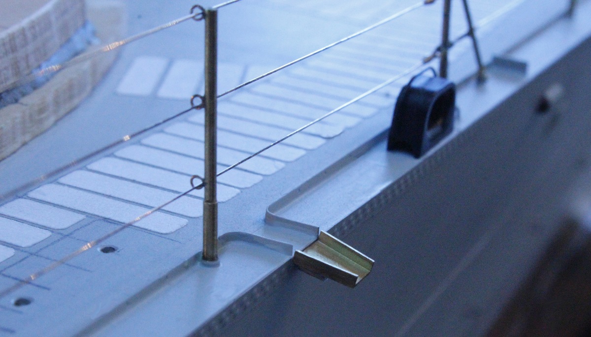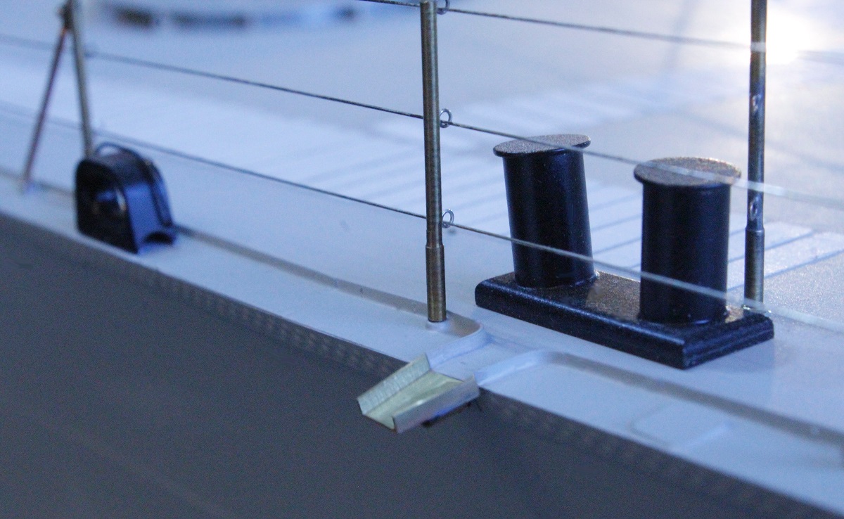 Hier ein noch ungespritztes (später mattschwarz) Speigatt eingesteckt. Das