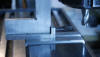 Paket wurde so im Maschinenschraubstock gespannt, daß über die Hälfte der Breite