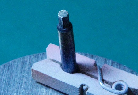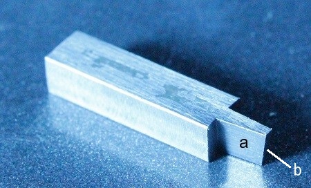 Schneidenteil - nur etwa 3 mm lang - schon angefräst. Die Seitenflächen (a)