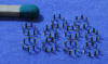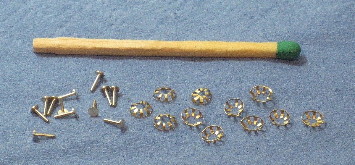 nagelförmige Bolzen (links, Zapfen-Ø 0,55, Kopf-Ø 1,8, Kopfhöhe 0,2 mm).