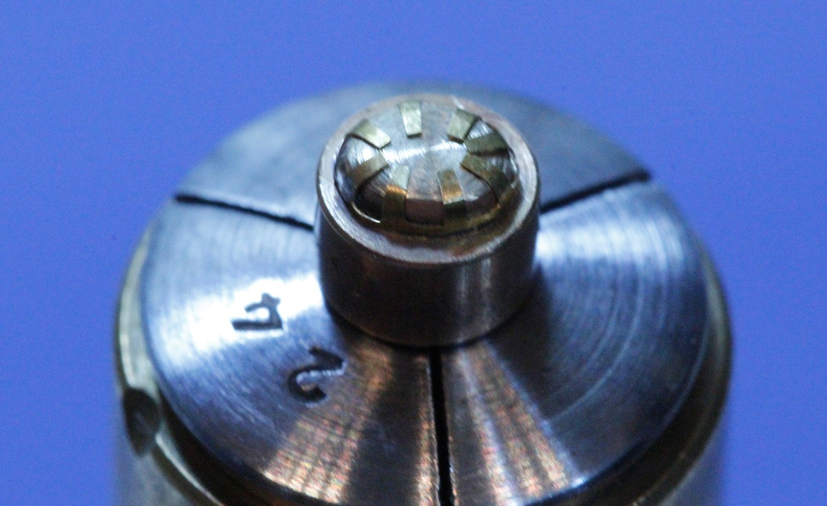 Schlagzahn ist gehärtet und im Dorn gespannt. Nur das Schneidenteil wurde beim