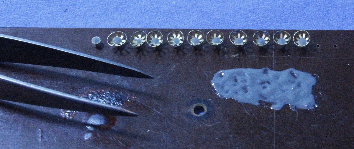 eingesteckt. Zuvor drücke ich sie mit dem Kopf in eine flache Lache 2K-Kleber.