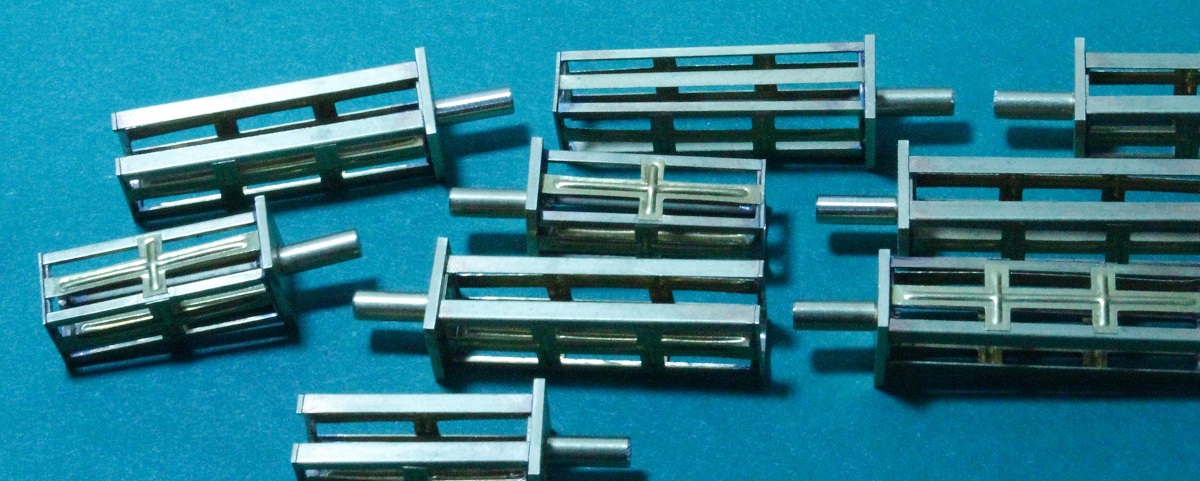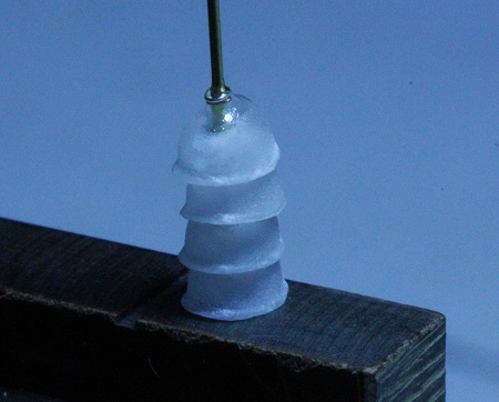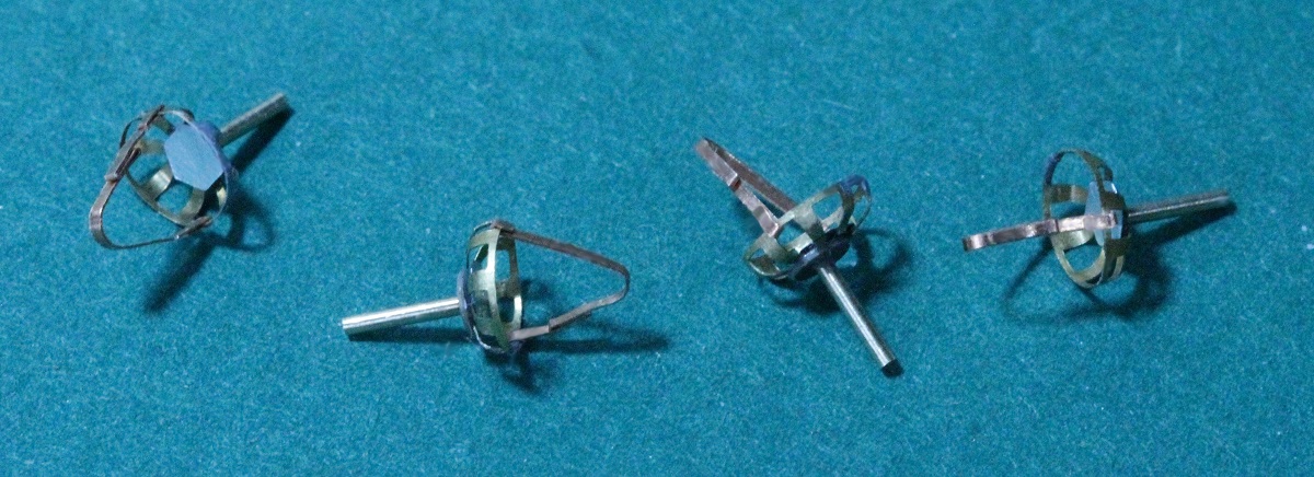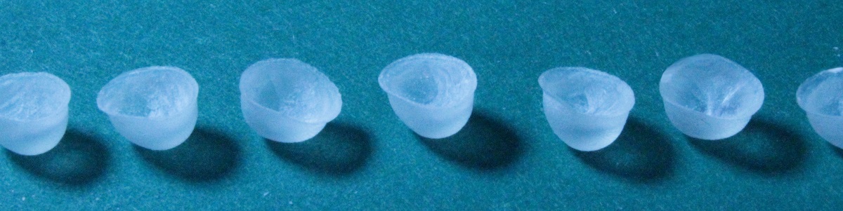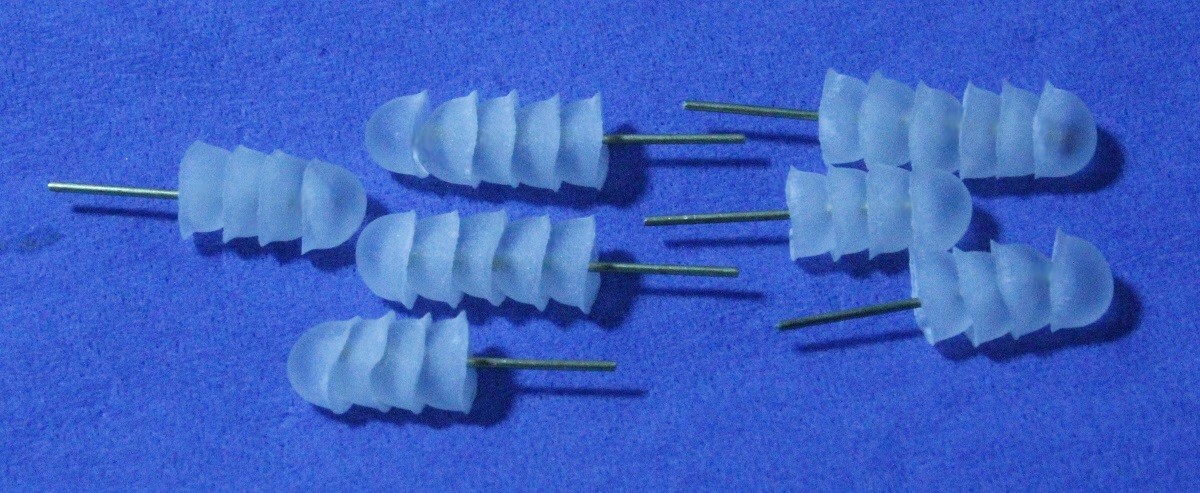 Mit den 0,6-mm-Zapfen werden sie in die Helme geklebt. Bei den beiden rechts ist