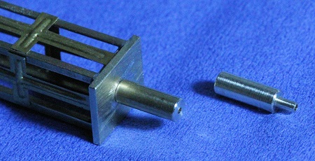 Zentrierstifte (rechts) gedreht. Sie passen mit dem dünnen Zapfen in die
