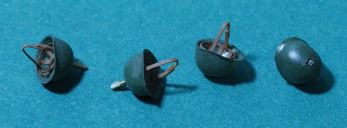 Die Stahlhelme sind sehr klein. Für das Hohl-Fräsen muß man sie mit den Fingern