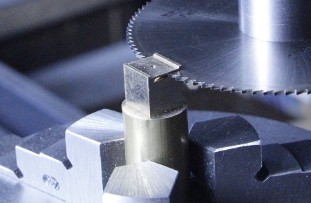 Säge nur wenige Zehntel-mm in das Material hinein und drehe dann den Rundtisch,
