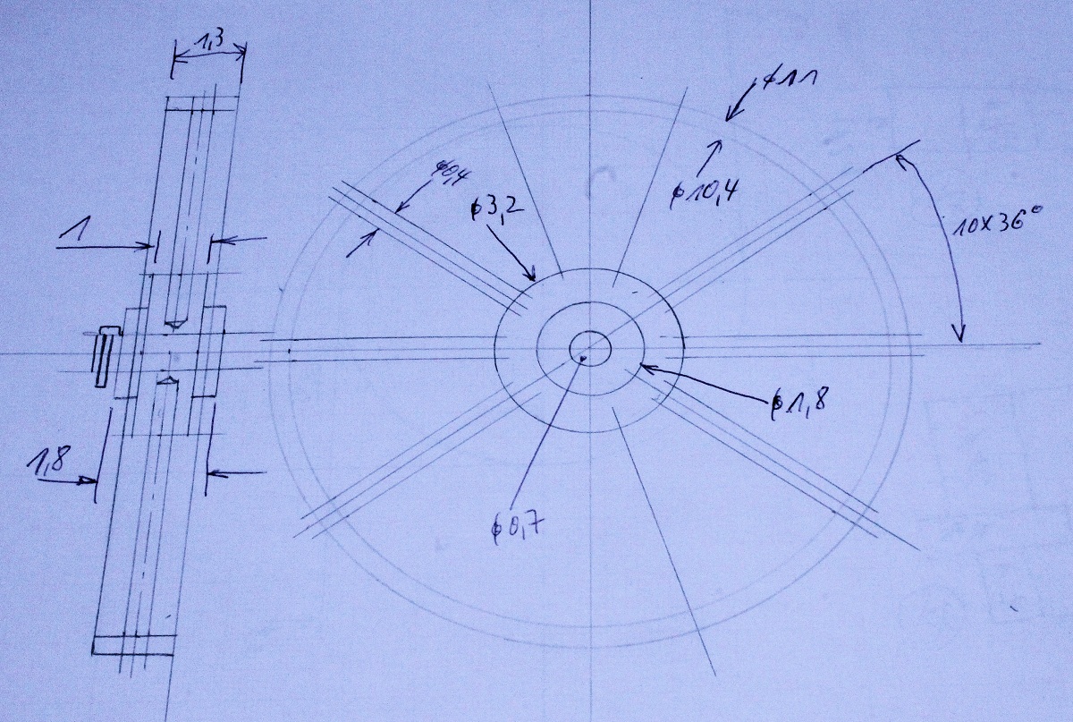 ist meine 10:1-Vergrößerungs-Zchng. für das Fräsen des "Radsterns". Mit einem