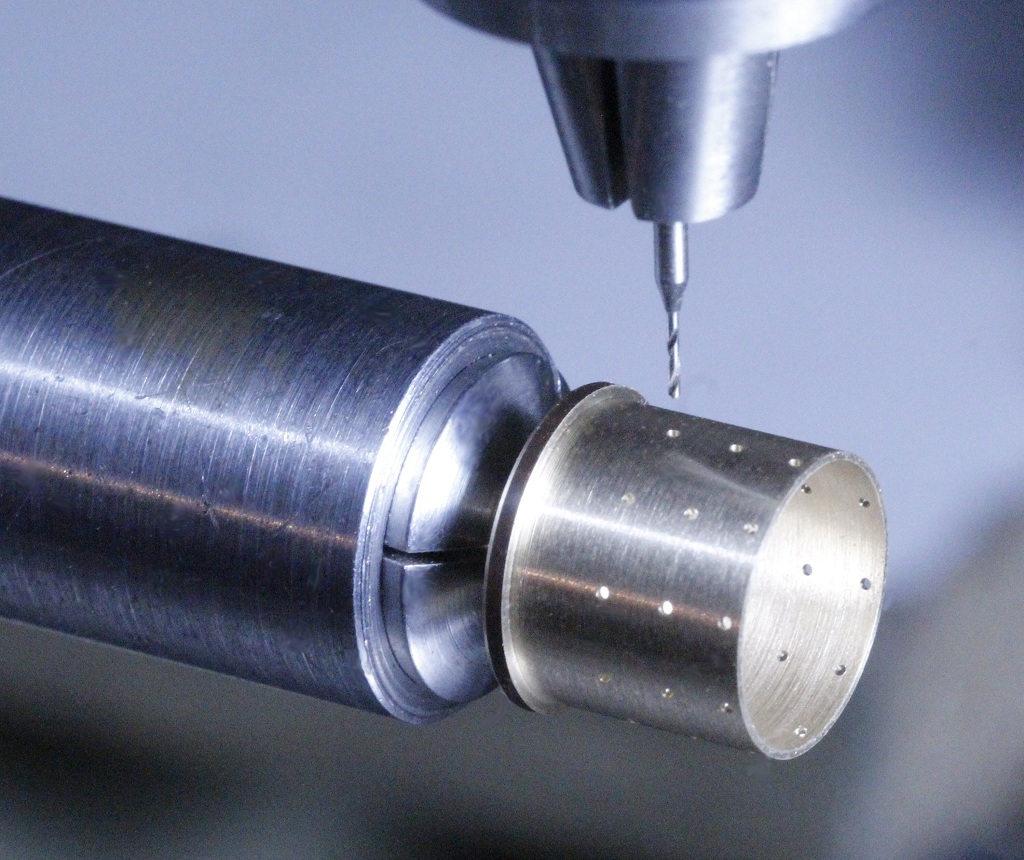 zehn radiale 0,4-mm-Bohrungen, diese nur 1 mm tief.
