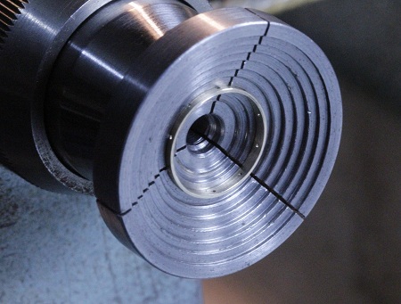 Mitte 0,3 mm tief eingedreht; am Außendurchmesser noch exakt 0,1 mm tiefer
